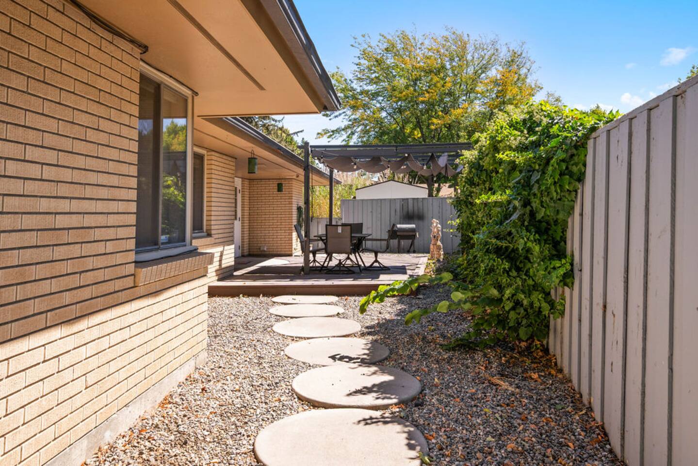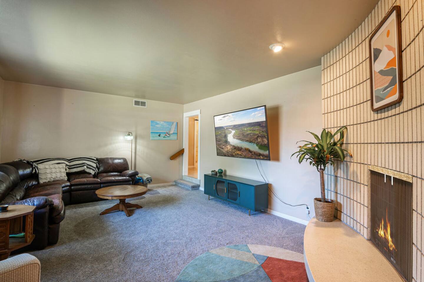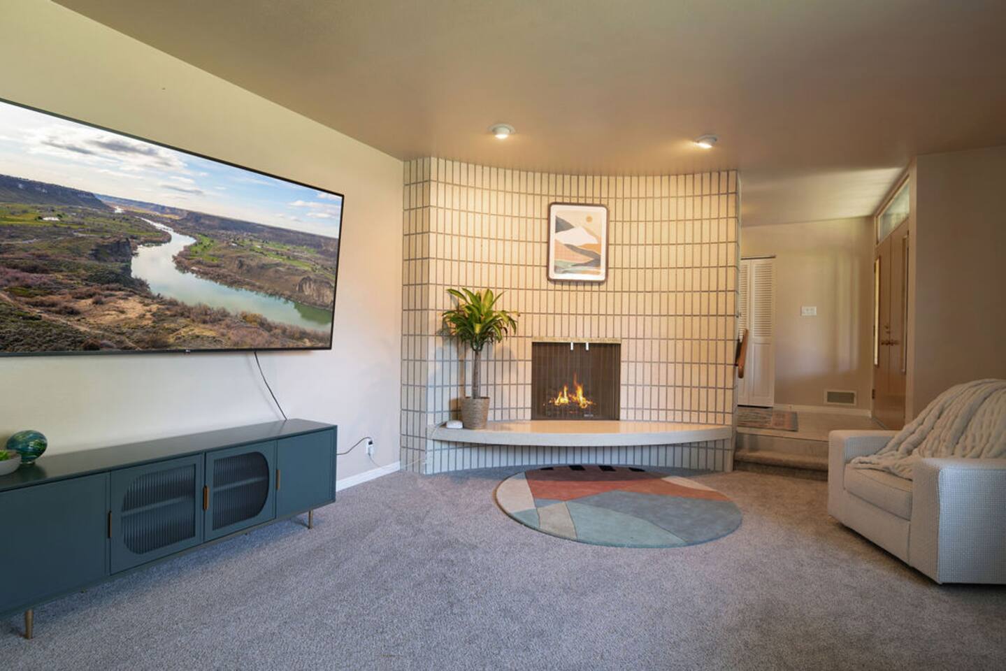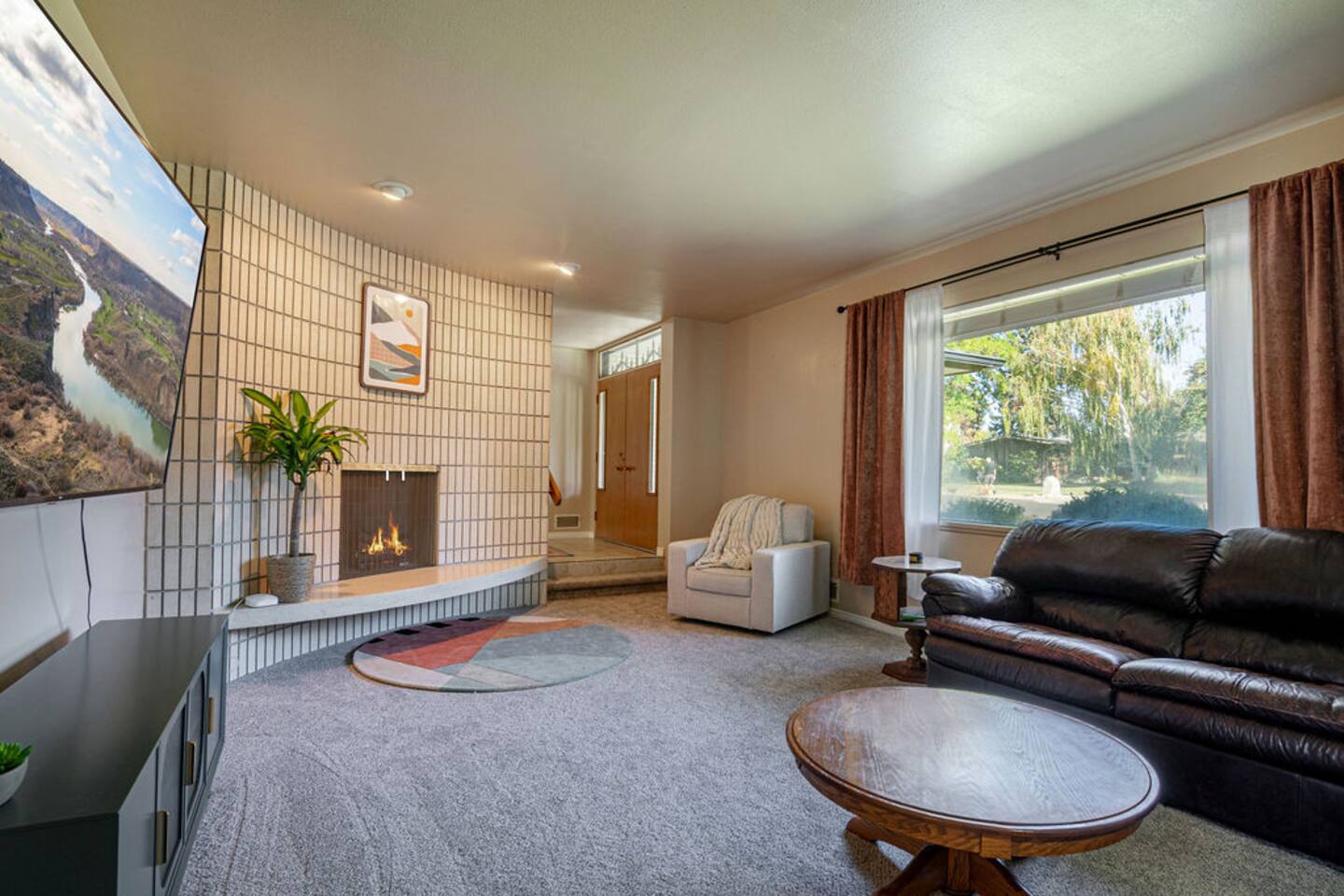 Step into the charm of a classic 1970s home, thoughtfully updated for modern comfort while preserving its period-correct architecture. This spacious 2 bed, 2 bath single-level retreat features brand-new carpet, stylish design details, and plenty of room to relax. The living room invites cozy gatherings with a beautiful fireplace, while both the living room and master bedroom are equipped with TVs for entertainment. Outside, enjoy the private patio with a full dining set, perfect for morning coffee or evening meals under the Idaho sky. A two-car garage adds convenience, while the pet-friendly policy makes it easy to bring your four-legged family members along. Located in a quiet, welcoming neighborhood in central Twin Falls, this home offers the perfect blend of retro character, modern updates, and space to create lasting memories.