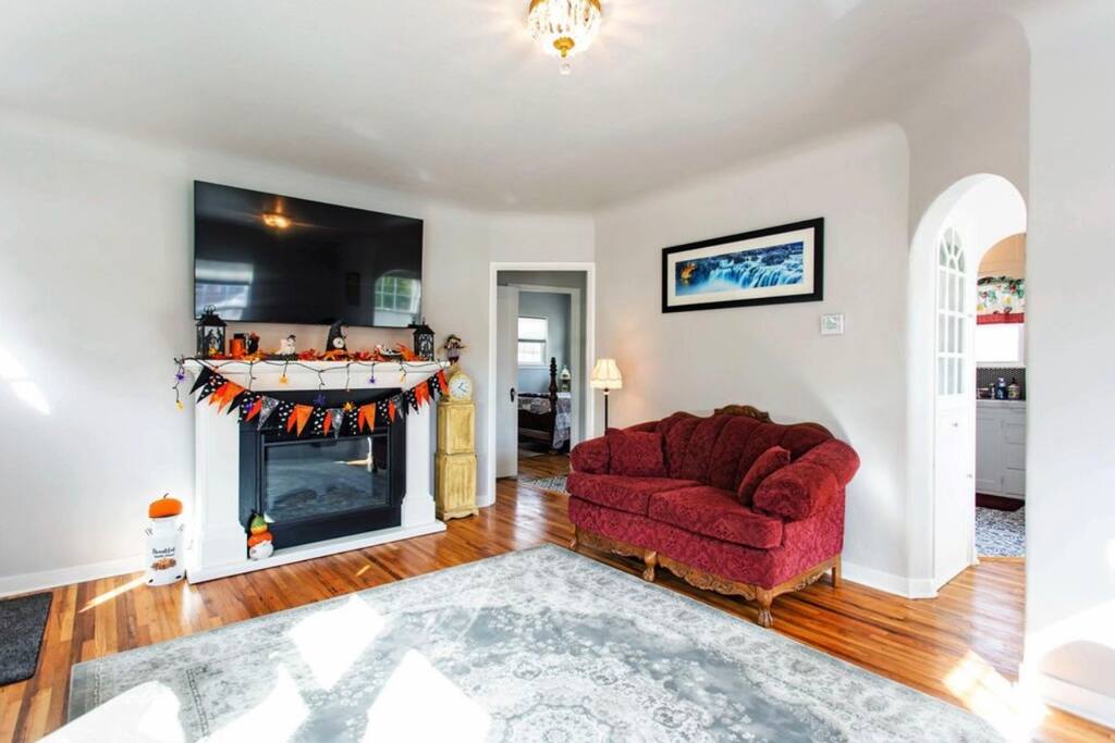 Aunt Annie’s Vintage 1935 Cottage Step back in time while enjoying modern comforts at this beautifully restored retro getaway. Perfect for couples, families, or friends looking for charm and convenience. Features: • 🛏️ 2 bedrooms with comfortable queen beds • 🛁 1 full bathroom with retro charm • 🔥 Cozy living room with fireplace and Smart TV • 🍳 Fully equipped retro kitchen with appliances • 🌳 Outdoor sitting area with gazebo and grill • 🧺 Washer and dryer located in the basement • 🚗 Spacious drive-through driveway with plenty of parking • 🌟 Original refinished hardwood floors throughout Experience the warmth and character of a 1935 cottage, thoughtfully updated for a relaxing and memorable stay!