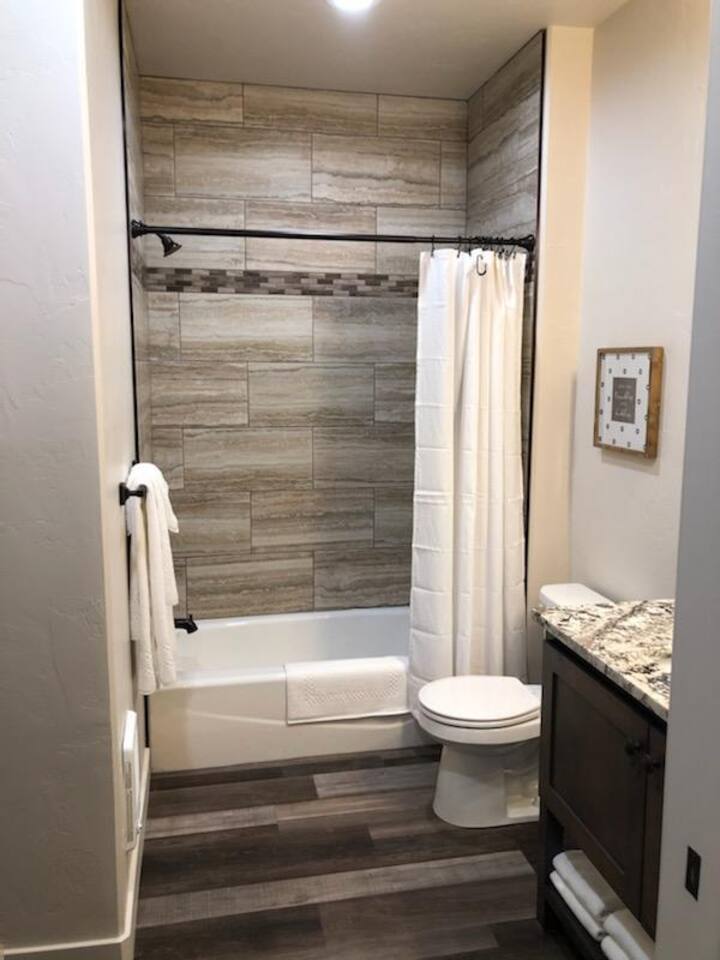 New Summer 2020 - 2 bed, 2 bath cabin. - Suite 1: King bed, 55" Smart TV and closet, private bath with walk-in tiled shower - Suite 2: King Bed, 55" Smart TV and closet, bath with tiled tub/shower. Fully equipped kitchen with full sized fridge, range, oven, dishwasher, microwave, coffee machine, toaster, and blender. Also has dining area for six. Living room has fireplace, 65" Smart TV, and queen sleeper sofa. Free WiFi Sleeps 6