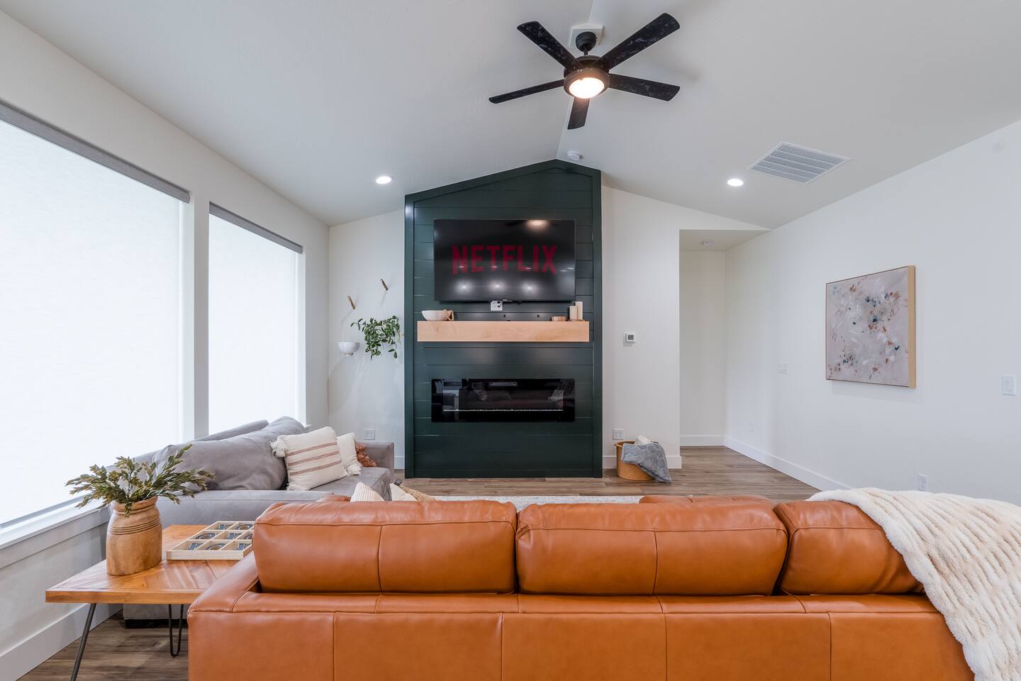 Welcome to your chic and stylish Kimberly getaway! This modern retreat boasts clean, bright decor with granite countertops, a cozy fireplace, and a spacious king bed for ultimate comfort. Enjoy the convenience of an in-home washer and dryer, and park with ease in the private garage. Unwind in the fenced yard, perfect for quiet relaxation or a morning coffee. With every detail thoughtfully curated, this home offers a luxurious stay in a serene setting!