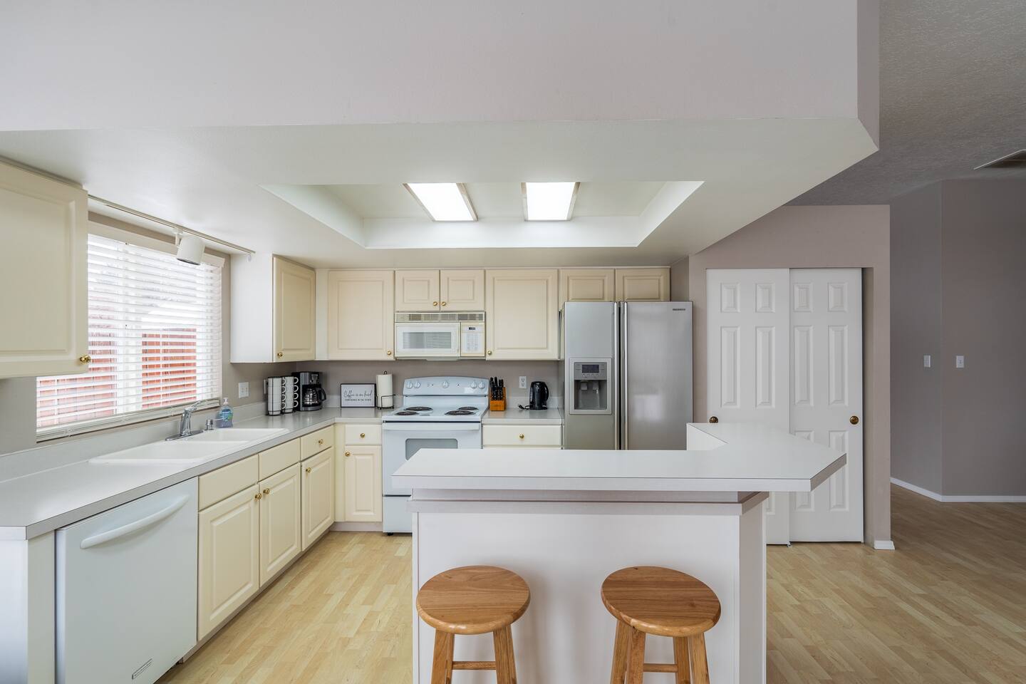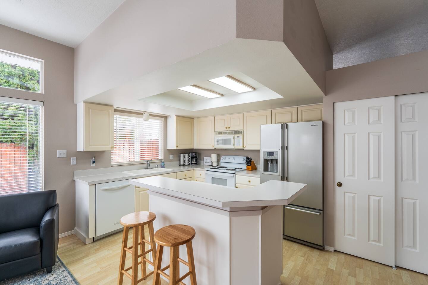 Really enjoyed our time here. We used to live in the neighborhood and wanted something close so our kids could walk to friends' houses etc... and this was perfect for us. Plenty of room for the 7 of us. Nice yard and easy access to everything. The kids spent lots of time looking through the "I Spy" books that are there! Great place to stay!