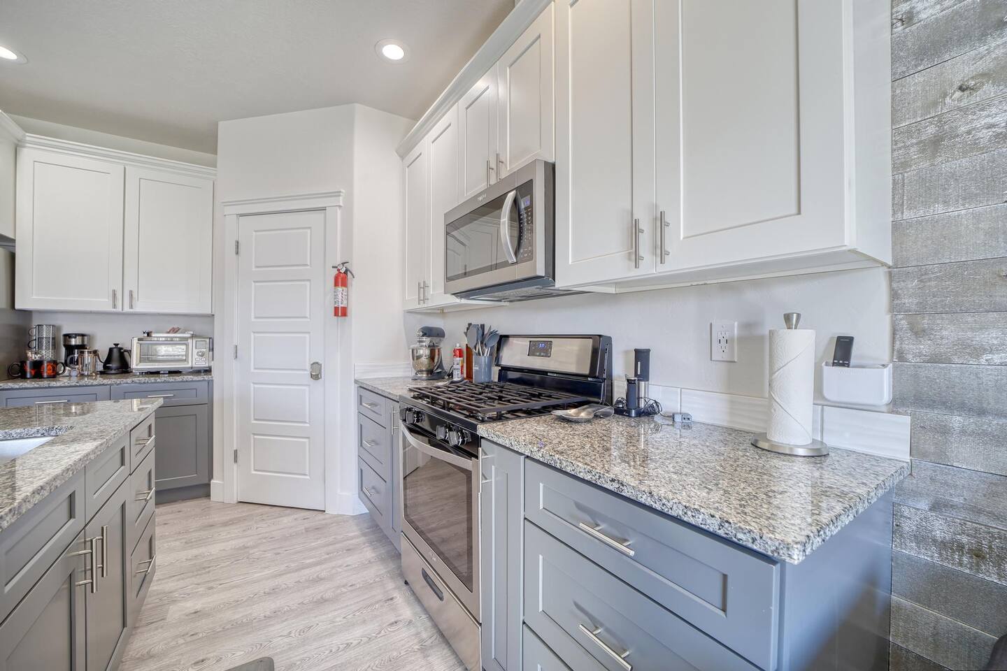 The kitchen includes most appliances and utensils you will find yourself needing and, all units include tons of special touches - like: Free drinks Video Game Systems Large Screen Smart TVs Pet Dishes Snacks Kayak Use ....and many more amenities. Special needs? Just ask and we will try our best to accommodate or point you in the right direction!