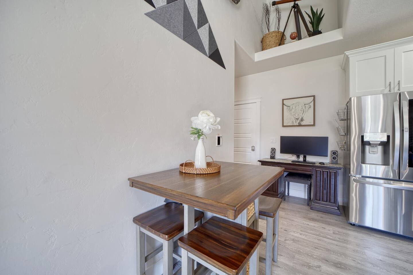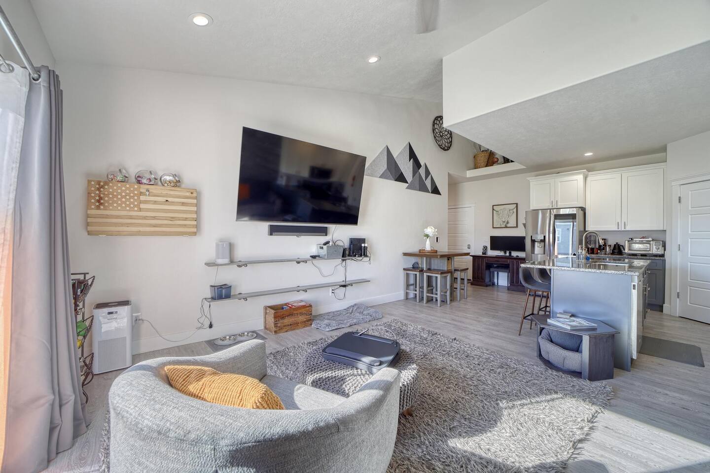 The space 1087A - Full Kitchen - 1 Bedroom, 2 Bathrooms, 1 Kitchen / Living Area Upscale townhomes that were built specifically for short term rentals. This listing if one of two units (at this location) to choose from: Full Kitchen w/ sleeping for 4 Fully fenced and private backyard. Units are dog friendly, and include full amenities including complementary drinks and snacks. TJ Rancher Units have the look and feel of a hotel, but the comfort and amenities of home. Great for long term work assignment.