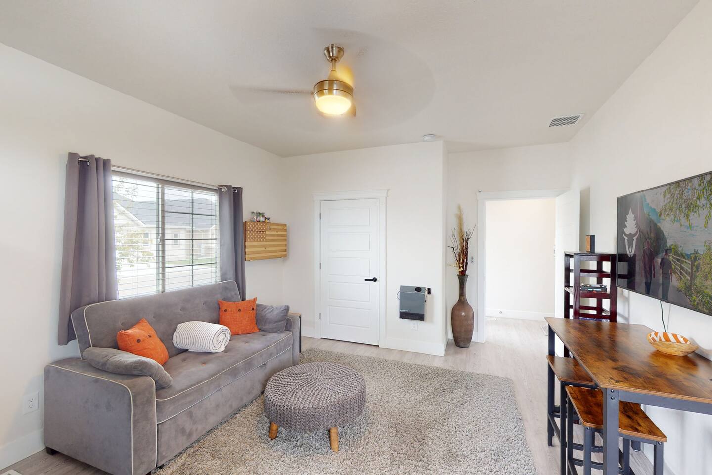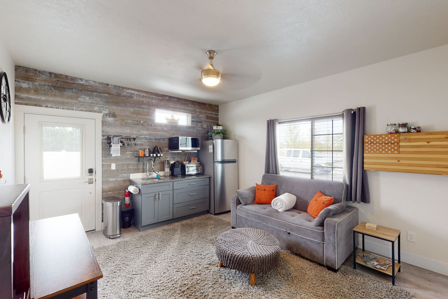 This unit is a kitchenette unit complete with 1 bedroom/1 bath, and a kitchenette/living room as well. This unit does not include a fenced yard but, it is very close to a large park for your pets. The space 1087C - Kitchenette - 1 Bedroom, 1 Bathroom, 1 Kitchenette / Living Area ~Upscale townhomes that were built specifically for short term rentals. ~This listing if one of two units (at this location) to choose from: ~Kitchenette with Sleeping for 4. ~Units are dog friendly (for free!) and include full amenities including complementary drinks and snacks. ~TJ Rancher Units have the look and feel of a hotel, but the comfort and amenities of home. ~Great for long term work assignment.