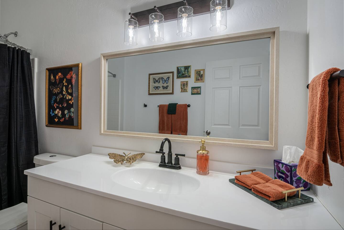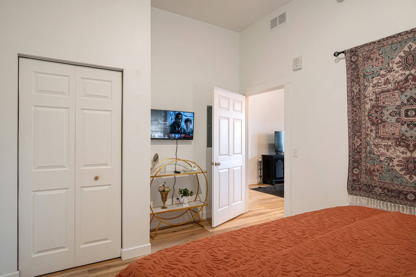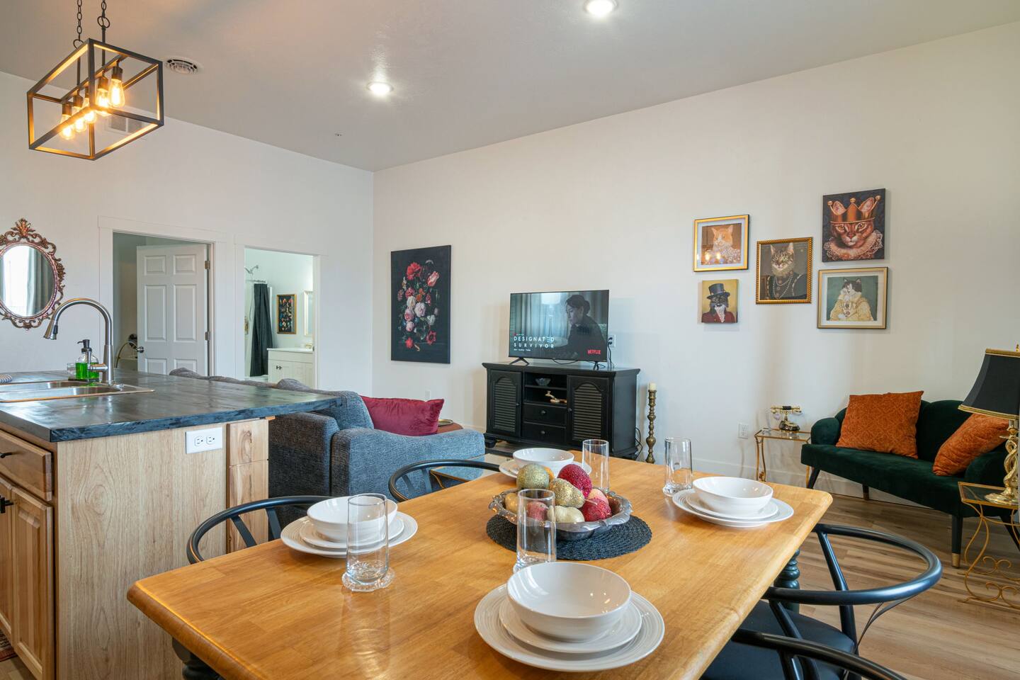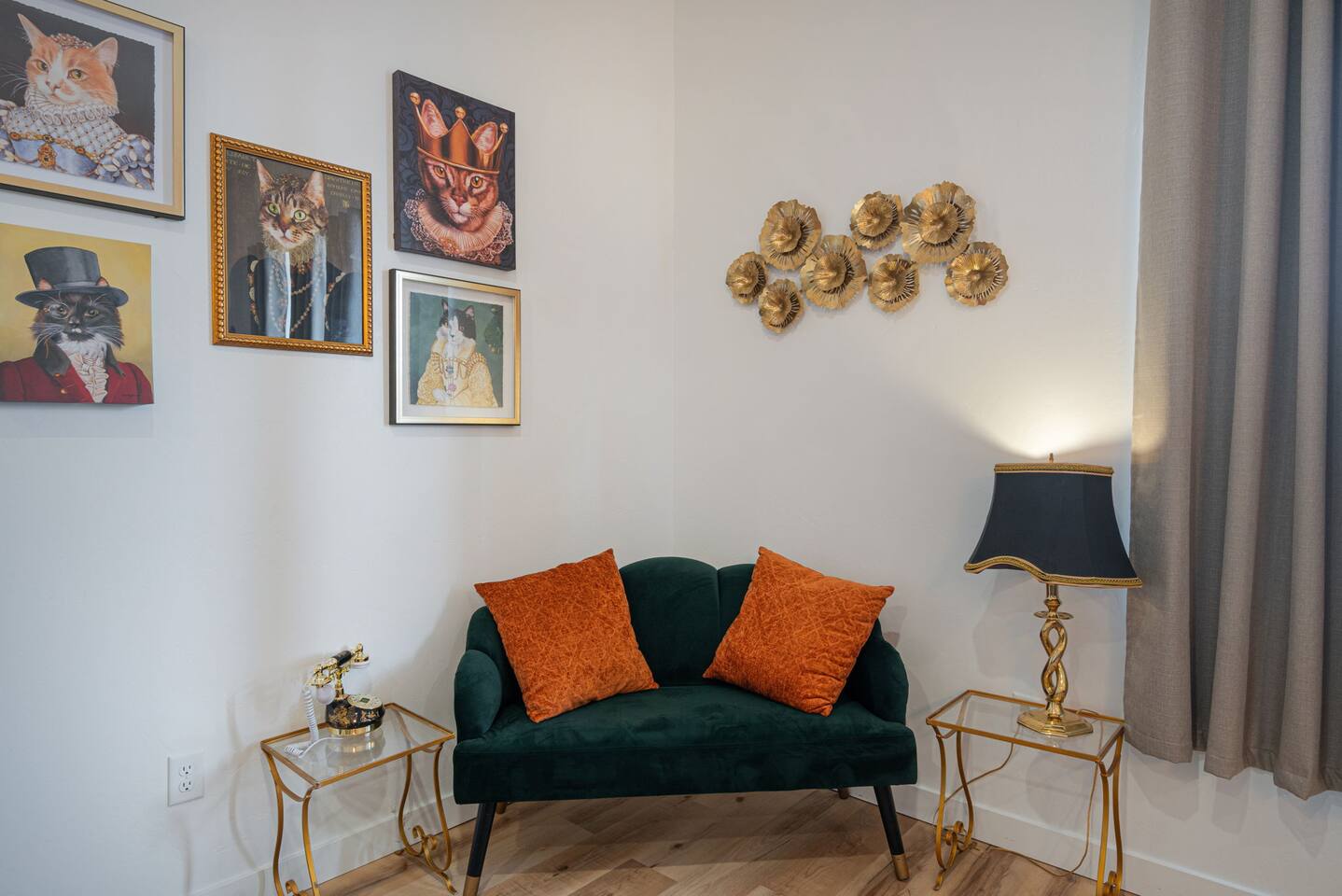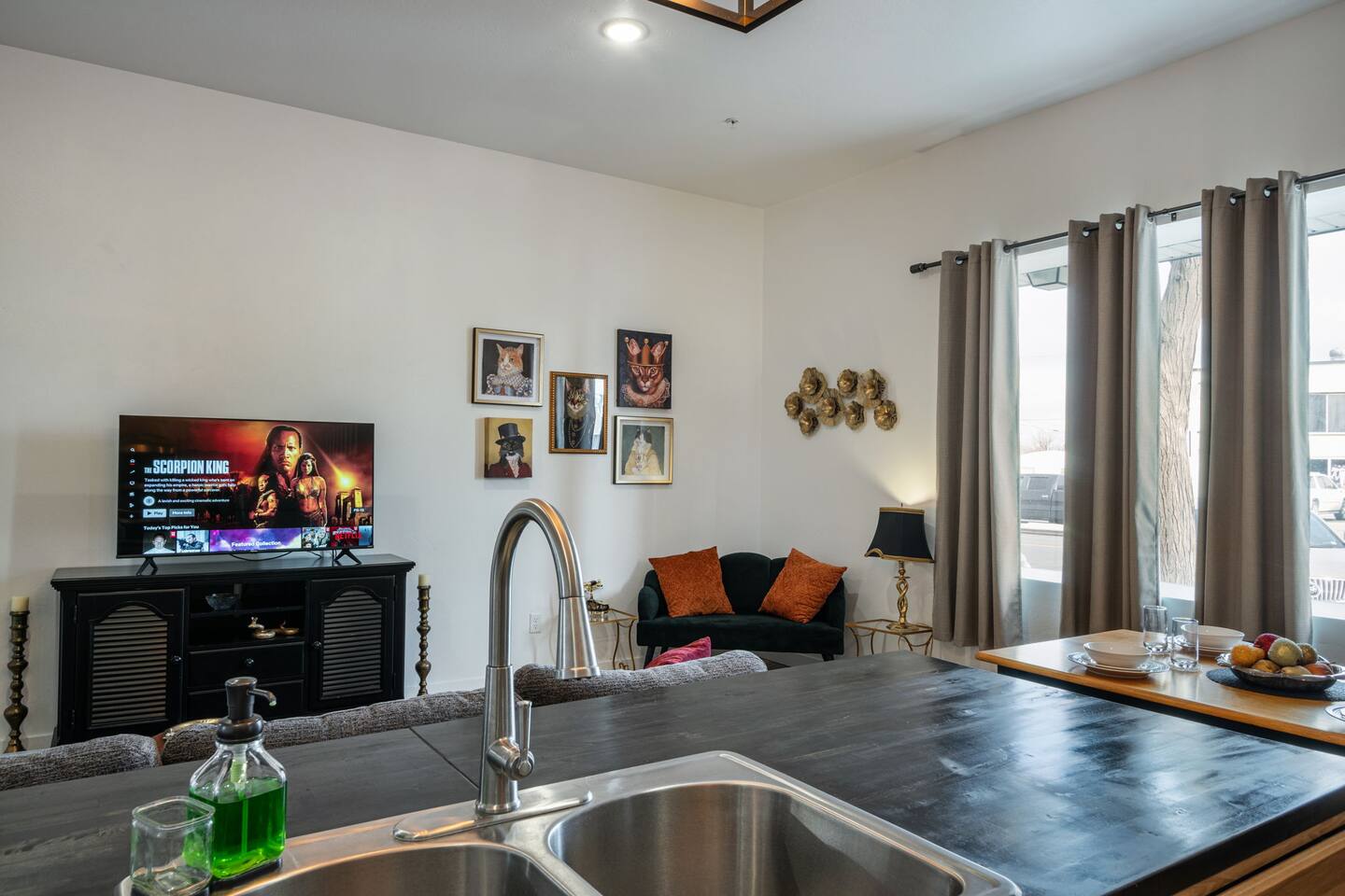 Welcome to our cozy, cat-themed one-bedroom apartment! This charming space features a full kitchen, a comfortable bedroom, and a full bathroom, all tastefully decorated with feline flair. Located in a small, quiet complex, you’ll enjoy free parking and on-site washer/dryer access. The neighborhood is safe and peaceful, perfect for a relaxing stay. Whether you’re here for work or leisure, this unique retreat offers comfort and convenience in a welcoming atmosphere.