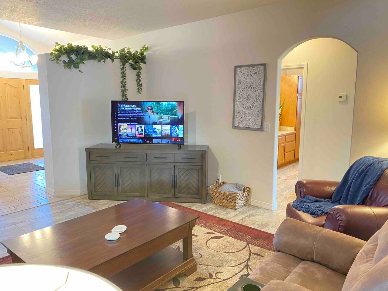 ~Viewing pleasures include local channels, Netflix, Hulu, Amazon streaming ~Double car garage - only one garage side is accessible ~Large RV parking area on the side of the property (approx 60ft) ~Four bedrooms and laundry room ~Stocked kitchen with the basic cooking utensils and dinnerware ~On demand filtered and purified drinking water ~Propane grill and outdoor sitting area